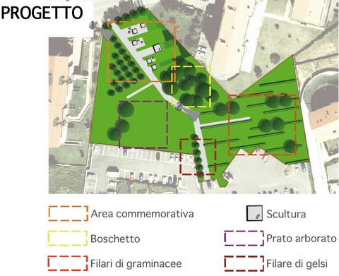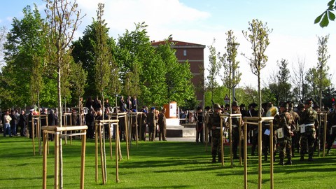 Il parco nasce in ricordo dei militari italiani caduti durante gli attentati di Nassiriya nel 2003. Il disegno planimetrico del parco ripercorre la campitura agreste che caratterizza le campagne circostanti creando delle aree con differente destinazione: l’area della riflessione (piazza presso il monumento), l’area commemorativa (i filari dei 19 Crataegus x lavallei 'Carrierei', a ricordo dei 19 caduti), l’area della ricreazione (grande prato arborato con specie autoctone), l’area dedicata alla lettura (sedute sotto gli ‘alberi da frutto’ e sedute tra le campiture a graminacee quali Miscanthus sinensis e Calamagrostis x acutiflora ‘Karl Foerster’).