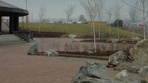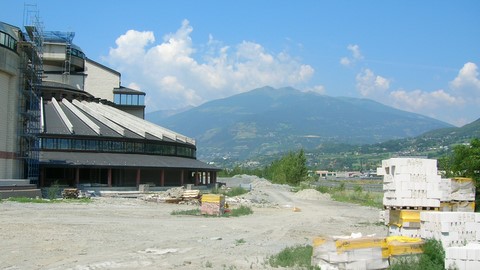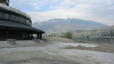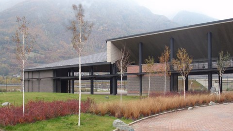 Progetto esecutivo, supervisione lavori e piano di manutenzione dell’area verde di pertinenta della Torre delle Comunicazioni, interna al comprensorio dell’Autoporto Valle d’Aosta S.p.A. Il progetto, declinato sul tema del fiume, è consistito nella creazione di un fil rouge in grado di legare i vari comparti dell’area, dal parcheggio all’aiuola di ingresso, dal piazzale della sala conferenze, alla mitigazione dell’autostrada. Il tema del fiume è stato interpretato mediante un largo uso di massi originari della valle e una vegetazione ornamentale declinata a partire da quella ripariale propria della Dora Baltea. Prendendo spunto dall'ultima opera di M. Shigemori, la grande aiuola d'ingresso è stata disegnata come un moderno karesansui dove le grandi rocce seguono le direttrici delle parabole e dei satelliti, quasi a liberare e captare le informazioni e le onde sonore.