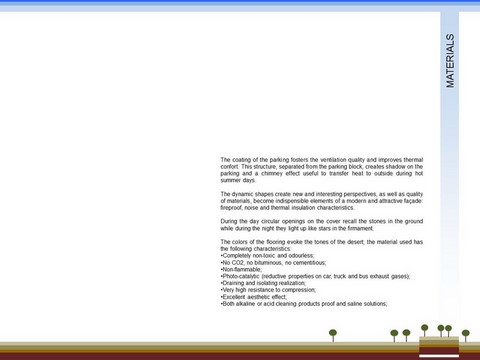 Il parcheggio fuori terra è immaginato come una zolla di un tipico paesaggio locale estruso dalla superficie del suolo.